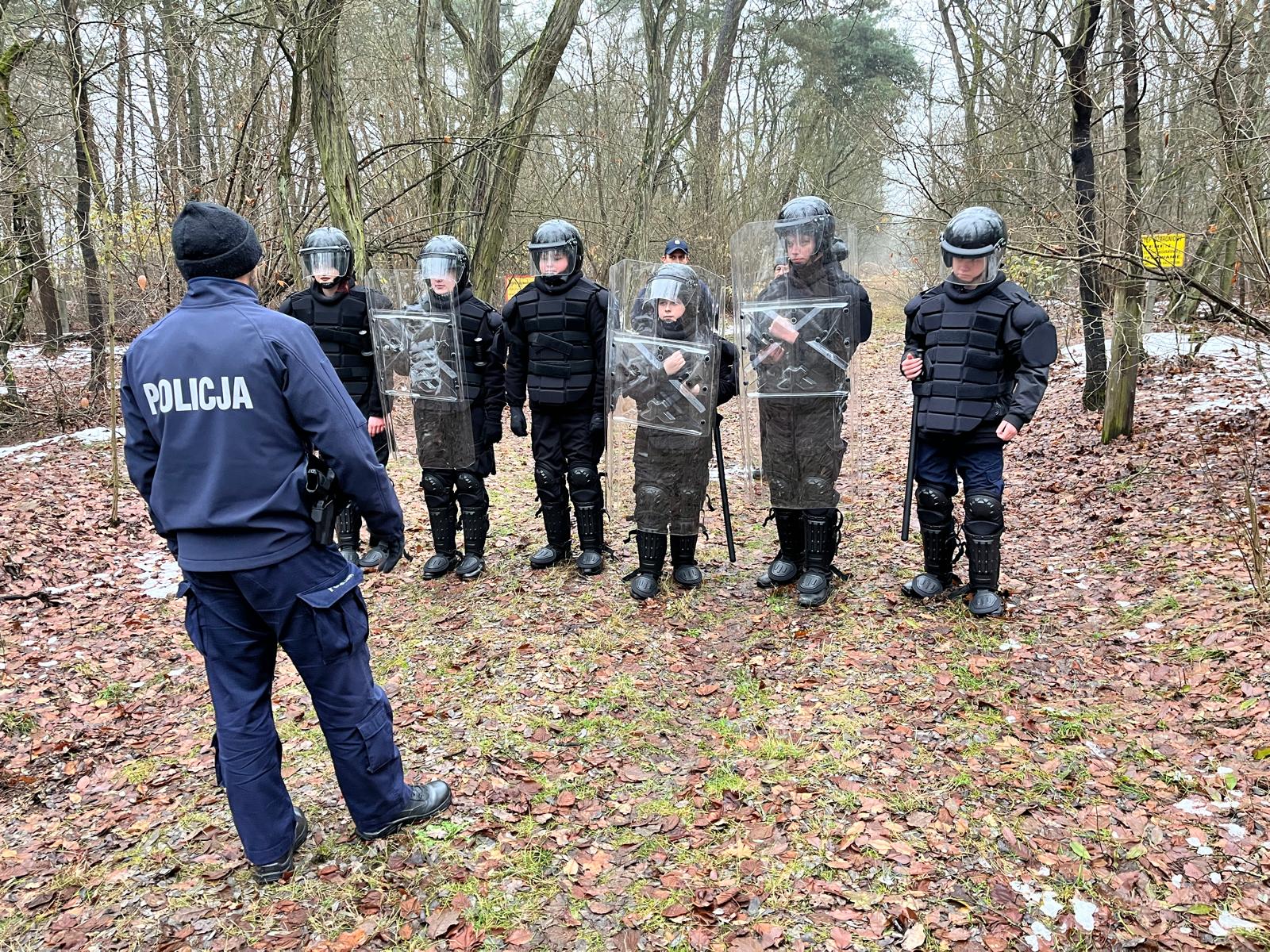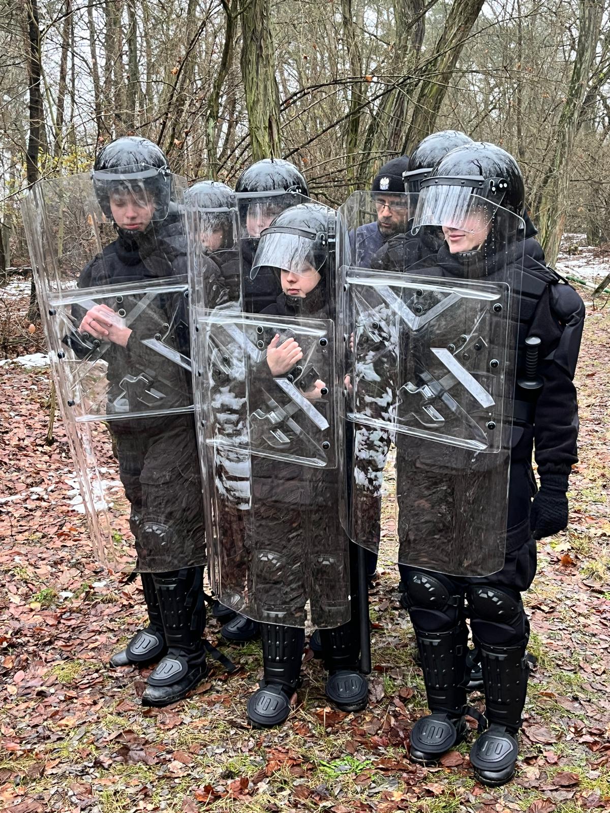 Uczniowie profilu policyjnego ćwiczyli szyki policyjne – kordon i tyraliera, poruszanie się w szyku oraz zwroty.