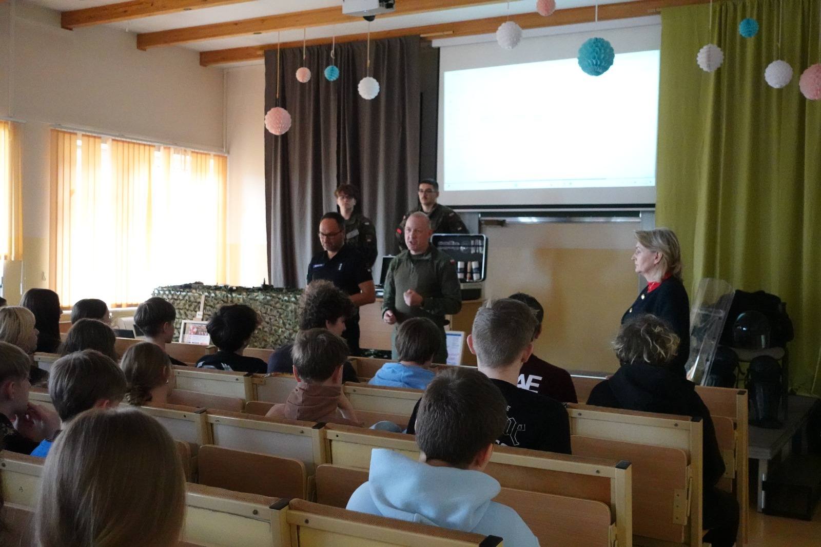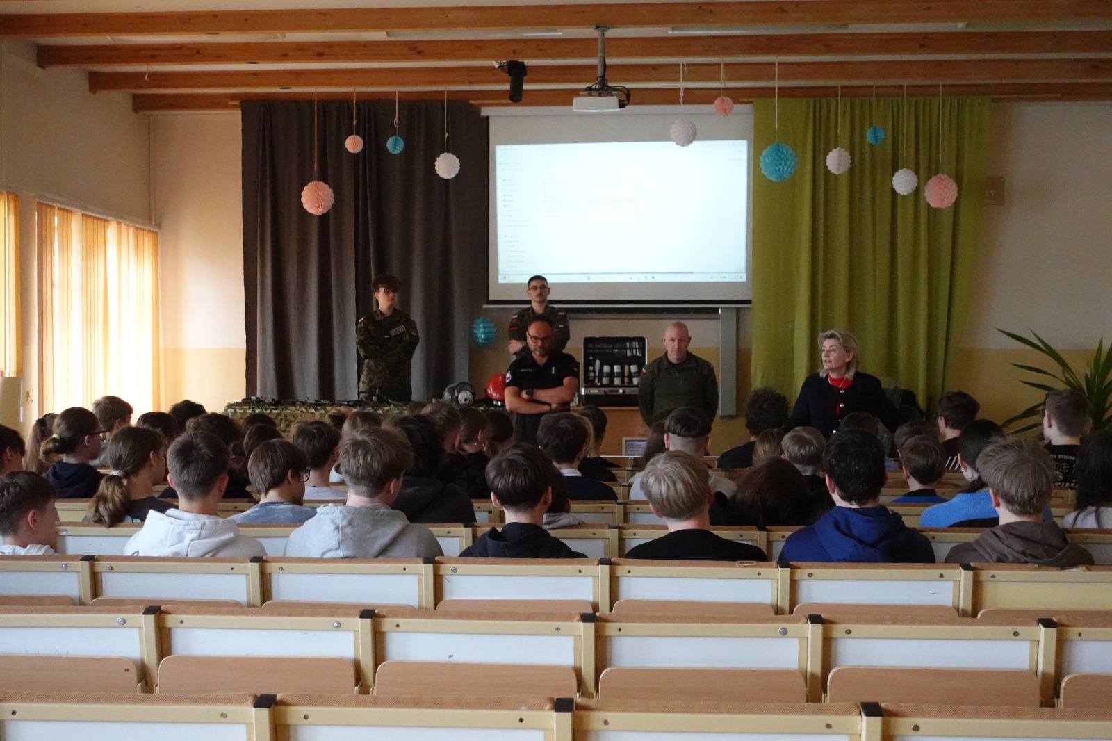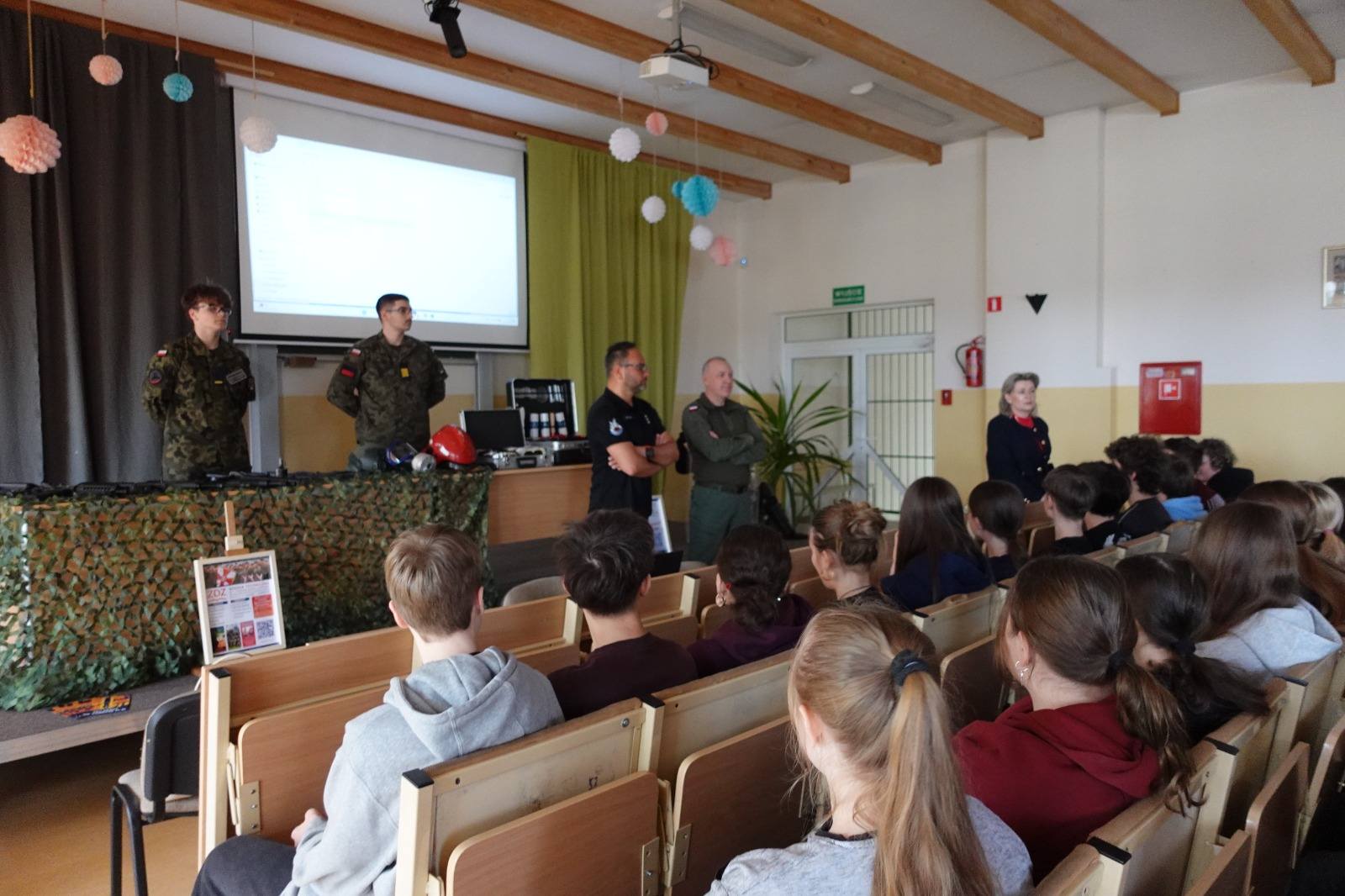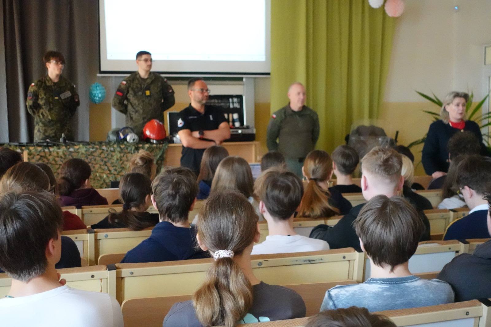 Podczas takich spotkań uczniowie szkół podstawowych mogą usłyszeć z ust naszych uczniów odpowiedzi na nurtujące ich pytania odnośnie rekrutacji, możliwości rozwijania swoich pasji oraz atmosfery w naszych szkołach. Z dużym zaciekawieniem oglądają sprzęt wojskowy, policyjny czy strażacki, który jest wykorzystywany na zajęciach edukacji mundurowej. Jeśli chcesz przeżyć przygodę w „mundurówce” to z nami się to uda!